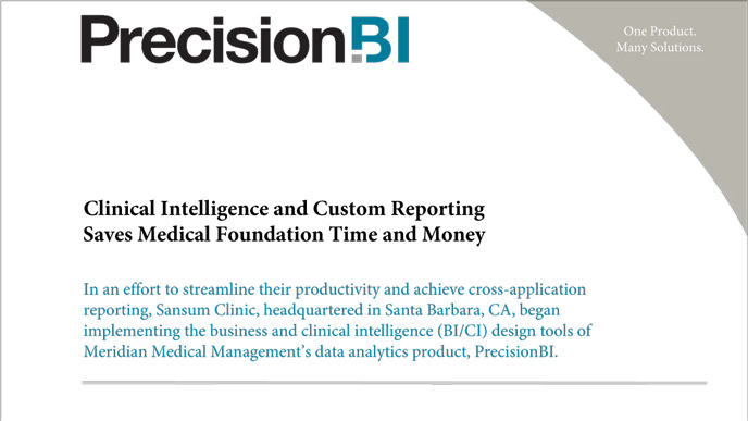 In an effort to streamline their productivity and achieve cross-application reporting, Sansum Clinic, headquartered in Santa Barbara, CA, began implementing the business and clinical intelligence (BI/CI) design tools of Meridian Medical Management’s data analytics product, PrecisionBI.