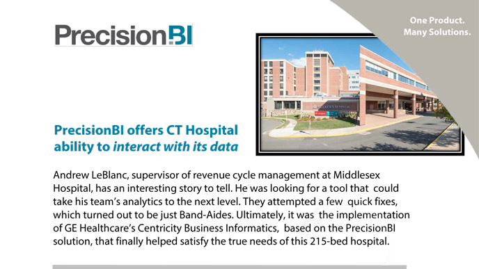 Ultimately, it was the implementation of GE Healthcare’s Centricity Business Informatics, based on the PrecisionBI solution, that finally helped satisfy the true needs of this 215-bed hospital.
